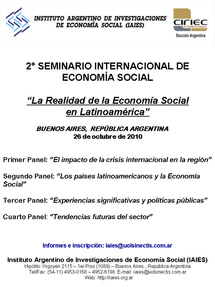 Cumpliendo con el principio fundacional de la “Difusión de la Economía Social”, el pasado 26 de octubre, en la sede de la Sección Argentina del CIRIEC (Instituto Argentino de Investigaciones de Economía Social –IAIES-), se realizó el Segundo Seminario Internacional, acerca de la “Realidad de la Economía Social en América Latina”. El evento superó las […]