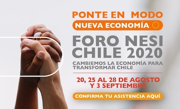 A partir del 20 de agosto, el Foro NESI Chile 2020 será un encuentro de personas de distintos campos de la Nueva Economía (Economía Circular, Economía del Bien Común, Cooperativas, Economía Social, Empresas B, Comercio Justo, Emprendedores y Emprendedora, entre otros.) que estarán compartiendo prácticas colaborativas que promueven un cambio de economía para transformar el mundo como hoy lo estamos viviendo.