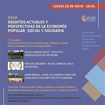 Se abordarán, desde una perspectiva problematizadora, los roles, desafíos y oportunidades que tienen por delante los distintos actores que hacen a los mercados solidarios y populares. Destacándose la relevancia de la integración y la construcción de sinergias en los circuitos de producción, comercialización y consumo en el marco de la Economía Social, Popular y Solidaria. Se analizará, a partir de diversas experiencias, los retos, los recorridos y los aprendizajes en la construcción de espacios alternativos de abastecimiento de alimentos.
