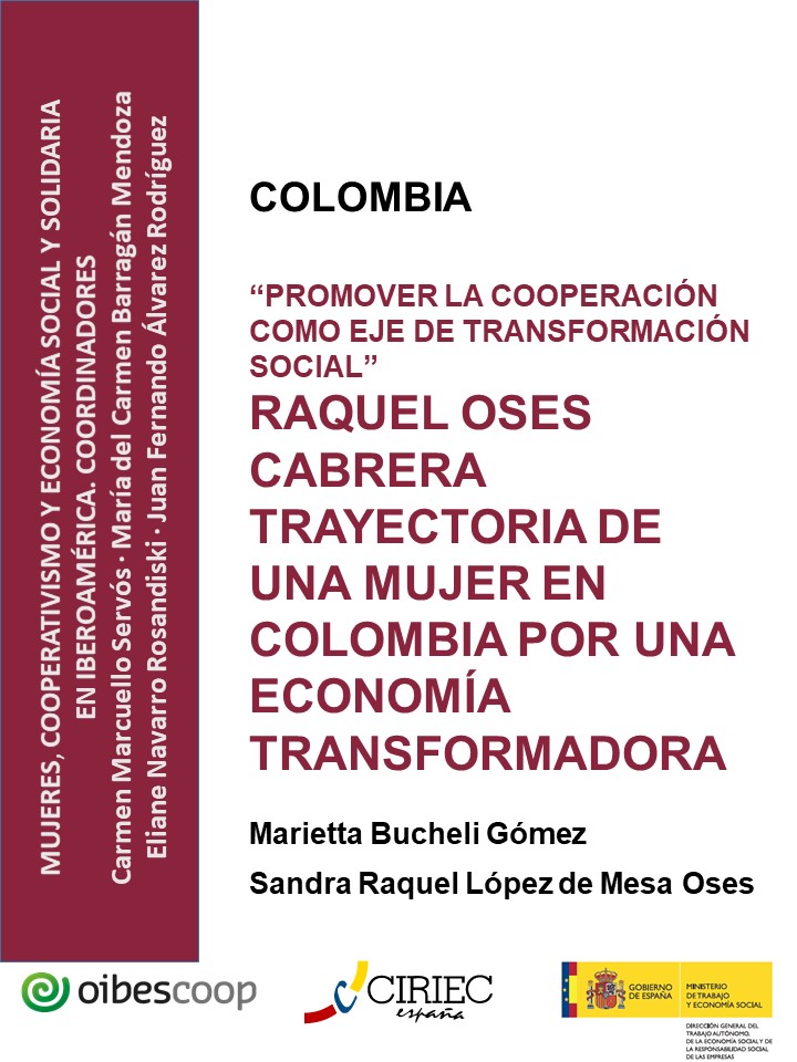 El capítulo Colombia reconoce y muestra la experiencia de Raquel Oses Cabrera como mujer impulsora del fomento; de la investigación-docencia y servicios de la Economía Social y Solidaria en Colombia y de ejemplos concretos de la incidencia de su entrega en esta función. Su trayectoria ejemplifica la necesidad latente de evidenciar el aporte de la mujer, como eje fundamental de las acciones que permiten que las empresas de la Economía social y solidaria permanezcan, así como también mantener en debate académico la especificidad de esta economía. Como estrategias para la investigación, se acudió a diferentes herramientas, entre ellas la historia de vida, entrevistas a personas que conocen la trayectoria de la Maestra Oses y otras formas de recolección de información. Los principales hitos encontrados reflejan el aporte de Raquel en términos de: construcción de Escuela en Economía Social y Solidaria; construcción de la Ley que define el Sistema de Economía Solidaria; construcción de educación formal y de capacitación en Economía Social y Solidaria y resultados específicos de sus acciones de fomento. Lo anterior con la mirada permanente de un trabajo en equipo con una visión de territorio y acudiendo siempre al diálogo de saberes.