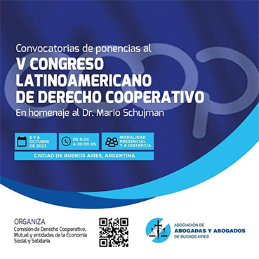 La Asociación de Abogados y Abogadas de Buenos Aires y la Comisión de Derecho Cooperativo, Mutual y de entidades de la Economía Social y Solidaria invitan al V Congreso Latinoamericano de Derecho Cooperativo, que en esta edición se realizará en homenaje al Dr. Mario Schujman, referente abogado e investigador universitario en Derecho de la Economía Social, fallecido el pasado mes de abril.