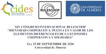 Los próximos días 24 y 25 de septiembre de 2020 se celebrará el XIV Congreso Internacional RULESCOOP en la Universidad de Almería (España), a cargo del Centro de Investigación en Derecho de la Economía Social y de la Empresa Cooperativa (CIDES-UAL). El tema general de este congreso es “Identidad cooperativa: puesta en valor de los elementos diferenciales de la economía cooperativa y solidaria”
